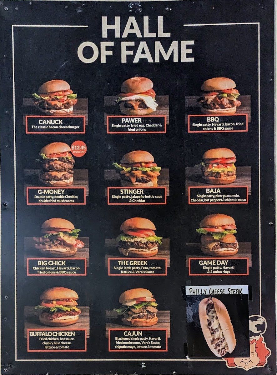 - Hall of Fame Burgers: Indulge in the famous G-Money burger, stacked with BBQ sauce, bacon, and fried onions. Not to mention the classic Canuck, loaded with bacon and cheese.